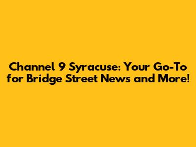 What's up, Syracuse fam! If you're looking for the latest happenings around Bridge Street and everything else going on in our awesome city, you've landed in the right spot. We're diving deep into what makes Channel 9 Syracuse such a crucial source for local news, community updates, and, of course, all the buzz about Bridge Street, Syracuse, NY. Whether you're a longtime resident or just settling in, staying informed is key, and Channel 9 has got your back. They’re not just another news channel; they’re part of the fabric of Syracuse, bringing you stories that matter, right when they matter. From breaking news that impacts your commute to heartwarming community features, Channel 9 is your window to the pulse of our city. And when it comes to a landmark like Bridge Street, you can bet they’re covering the developments, the events, and the everyday life that makes it such a vibrant part of Syracuse.