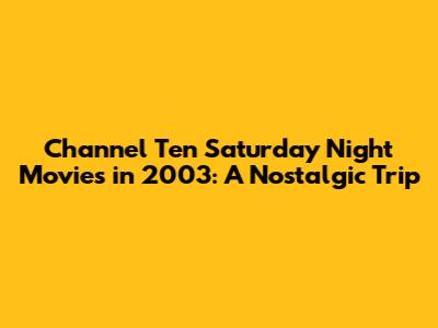 Hey movie buffs and fellow TV lovers! Remember those awesome Saturday nights back in 2003 when you'd settle in on the couch, grab some snacks, and get ready for the Channel Ten Saturday Night Movie? Well, buckle up, because we're taking a trip down memory lane to revisit the cinematic gems that graced our screens that year. We're talking about the movies that defined a generation, the ones we'd quote with our friends, and the ones that gave us all those warm, fuzzy feelings. Get ready to reminisce about the films, the actors, and the overall vibe of Saturday night movie nights on Channel Ten in 2003! Let's dive into the world of what made these movie nights so special and why they still hold a place in our hearts. It's a blast from the past, guys!