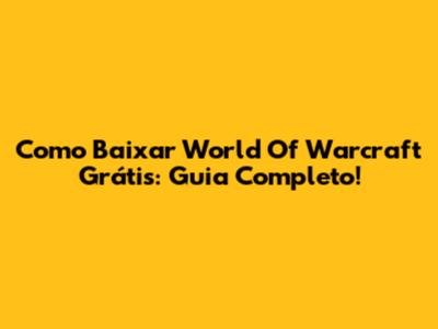 Como Baixar World Of Warcraft Grátis: Guia Completo!