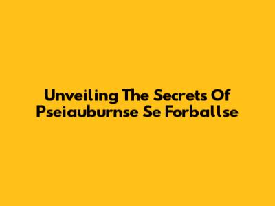 Unveiling The Secrets Of Pseiauburnse Se Forballse