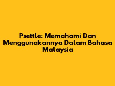 Psettle: Memahami Dan Menggunakannya Dalam Bahasa Malaysia