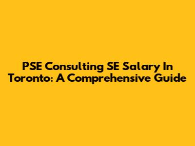 PSE Consulting SE Salary In Toronto: A Comprehensive Guide