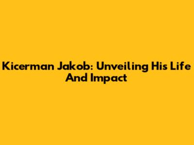 Kicerman Jakob: Unveiling His Life And Impact