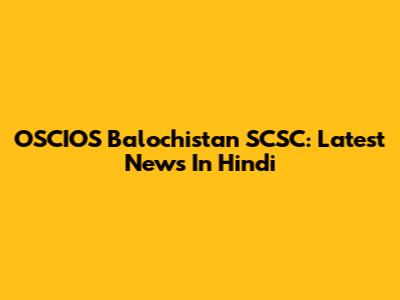 OSCIOS Balochistan SCSC: Latest News In Hindi