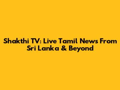 Shakthi TV: Live Tamil News From Sri Lanka & Beyond