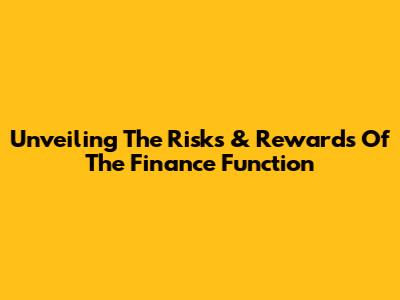 Unveiling The Risks & Rewards Of The Finance Function