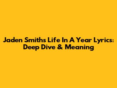 Jaden Smith's 'Life In A Year' Lyrics: Deep Dive & Meaning