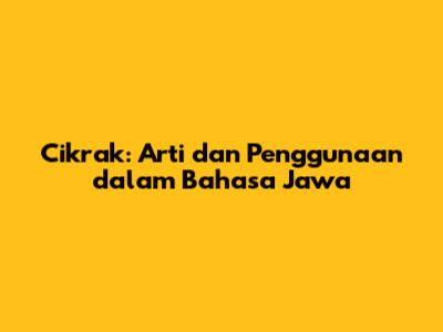 Hey guys, pernah dengar kata "cikrak"? Mungkin buat sebagian orang kata ini terdengar asing, tapi buat kamu yang akrab sama bahasa Jawa, pasti langsung ngeh. Nah, kali ini kita bakal kupas tuntas soal cikrak artinya bahasa Jawa ini. Siap-siap ya, kita bakal selami lebih dalam makna dan penggunaannya biar makin pinter ngomong Jawa!