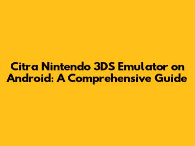 Hey guys! Are you ready to dive into the exciting world of 3DS gaming right on your Android device? Let's talk about the Citra emulator, a fantastic piece of software that brings your favorite Nintendo 3DS titles to your smartphone or tablet. This guide will walk you through everything you need to know, from understanding what Citra is to getting it up and running smoothly on your Android device. Buckle up, and let's get started!