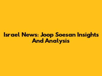 Israel News: Joop Soesan Insights And Analysis