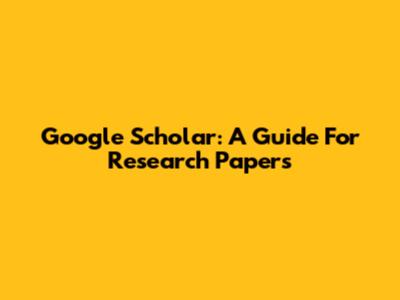 Google Scholar: A Guide For Research Papers