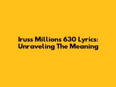 Iruss Millions 630 Lyrics: Unraveling The Meaning