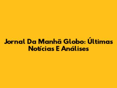Jornal Da Manhã Globo: Últimas Notícias E Análises