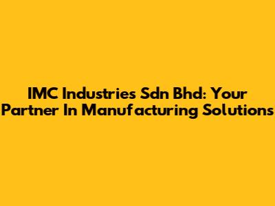 IMC Industries Sdn Bhd: Your Partner In Manufacturing Solutions