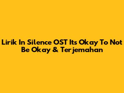Lirik "In Silence" OST It's Okay To Not Be Okay & Terjemahan