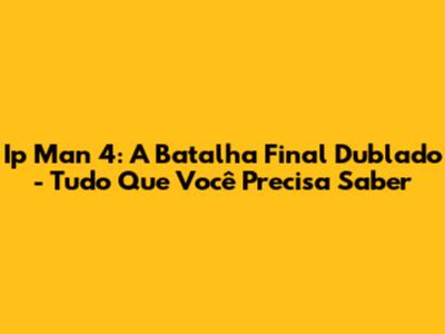 Ip Man 4: A Batalha Final Dublado - Tudo Que Você Precisa Saber