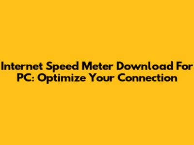 Internet Speed Meter Download For PC: Optimize Your Connection