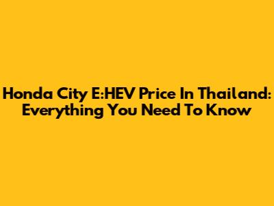 Honda City E:HEV Price In Thailand: Everything You Need To Know