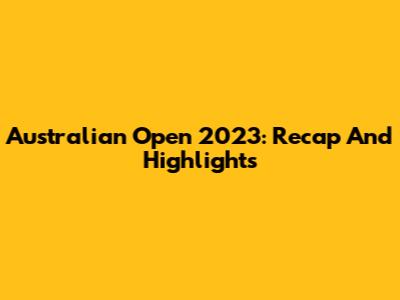 Australian Open 2023: Recap And Highlights