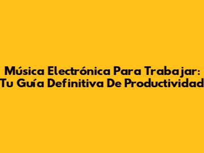 Música Electrónica Para Trabajar: Tu Guía Definitiva De Productividad