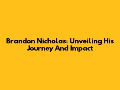 Brandon Nicholas: Unveiling His Journey And Impact