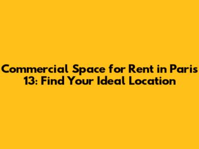 Why Choose Paris 13 for Your Commercial Space?