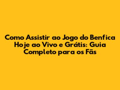 Assistir ao jogo do Benfica hoje é uma experiência emocionante para qualquer torcedor. Com este guia completo, você tem todas as informações necessárias para assistir ao jogo do Benfica ao vivo e grátis, seja por meio de canais de TV abertos, plataformas de streaming oficiais ou alternativas. Lembre-se de verificar a programação, garantir uma boa conexão com a internet e escolher a opção que melhor se adapta às suas necessidades e preferências. Prepare a pipoca, convide os amigos e aproveite cada lance, cada gol e cada vitória do seu time do coração!