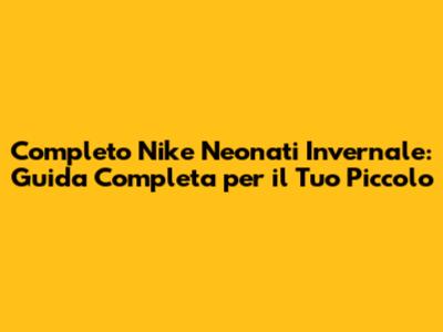 Ciao a tutti, amanti dello shopping per neonati! Oggi ci immergiamo nel fantastico mondo dei completi Nike neonato invernale. Se siete alla ricerca dell'outfit perfetto per il vostro piccolo durante la stagione fredda, siete nel posto giusto. In questa guida completa, esploreremo tutto ciò che c'è da sapere sui completi Nike per neonati, dai diversi modelli e materiali alle ultime tendenze e consigli per l'acquisto. Preparatevi a scoprire come mantenere il vostro bambino alla moda, comodo e al caldo durante l'inverno. Quindi, ragazzi, rimbocchiamoci le maniche e immergiamoci in questo mondo di stile e comfort!