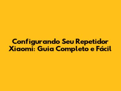 Passo a Passo: Configurando Seu Repetidor Xiaomi