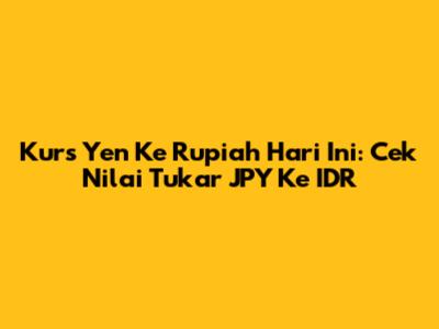Kurs Yen Ke Rupiah Hari Ini: Cek Nilai Tukar JPY Ke IDR