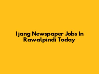 Ijang Newspaper Jobs In Rawalpindi Today