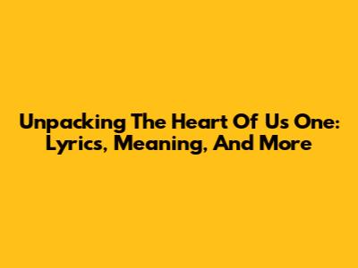 Unpacking The Heart Of 'Us One': Lyrics, Meaning, And More