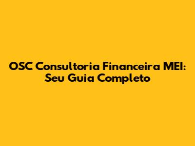 OSC Consultoria Financeira MEI: Seu Guia Completo