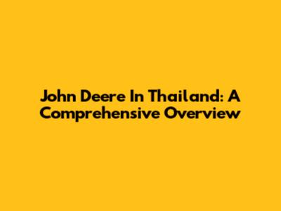 John Deere In Thailand: A Comprehensive Overview