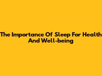 The Importance Of Sleep For Health And Well-being