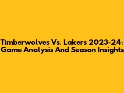 Timberwolves Vs. Lakers 2023-24: Game Analysis And Season Insights