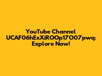 YouTube Channel UCAF06hExXiROOp17O07pwq: Explore Now!