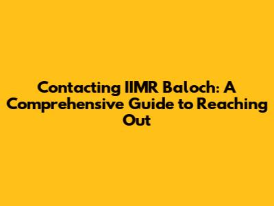 Understanding IIMR Baloch and Its Importance