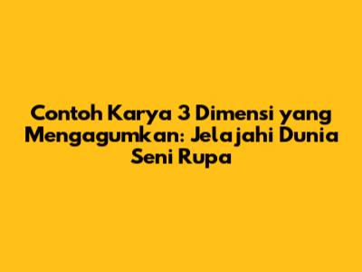 Karya tiga dimensi (3D) adalah bentuk seni yang memiliki panjang, lebar, dan tinggi, menempati ruang nyata yang bisa kita rasakan secara fisik. Berbeda dengan karya dua dimensi yang hanya memiliki panjang dan lebar, seperti lukisan atau gambar, karya 3D menawarkan pengalaman visual dan taktil yang lebih mendalam. Bayangkan saja, guys, kita bisa melihat, merasakan, dan bahkan berinteraksi langsung dengan karya seni ini! Dalam artikel ini, kita akan menjelajahi berbagai contoh karya 3 dimensi yang menginspirasi, dari yang klasik hingga yang kontemporer, yang akan membuka wawasan kita tentang dunia seni rupa yang kaya dan beragam.