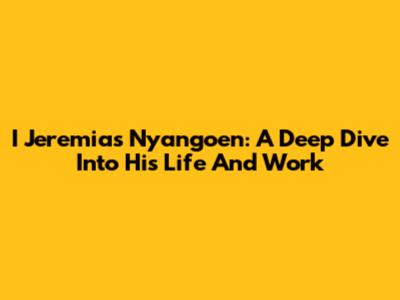 I Jeremias Nyangoen: A Deep Dive Into His Life And Work