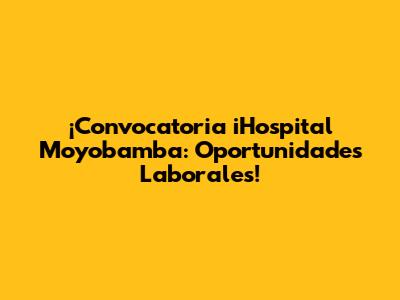 Hey, ¿qué tal, chicos y chicas? ¡Prepárense porque hoy les traigo una noticia que podría cambiarles la vida! Si estás en Moyobamba o sus alrededores y andas buscando esa oportunidad laboral que te impulse, ¡presta mucha atención! El iHospital Moyobamba ha lanzado sus convocatorias y aquí te contamos todo lo que necesitas saber para postular y tener la mejor chance de conseguir ese puesto soñado. Sabemos que buscar trabajo puede ser un rollo, pero con la información correcta y un poquito de preparación, ¡la cosa se pone mucho más fácil! Así que, ponte cómodo, coge tu café o tu agüita de paico y acompáñame en este recorrido por las convocatorias laborales del iHospital Moyobamba. ¡Vamos a desglosar todo para que no se te escape ningún detalle importante y puedas postular con toda la confianza del mundo!