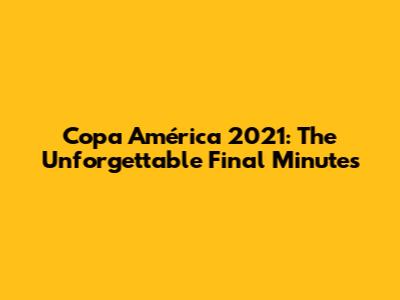 Hey guys, let's dive into one of the most nail-biting finishes in recent football history! We're talking about the Copa América 2021 final, specifically those heart-stopping last few minutes. This match between Argentina and Brazil was more than just a game; it was a clash of titans, a showcase of skill, and a masterclass in tension. The atmosphere was electric, the stakes were sky-high, and every second felt like an eternity. So, buckle up as we dissect those final moments, looking at the key plays, the strategic decisions, and the sheer drama that unfolded on the pitch. This was a match that truly had everyone on the edge of their seats, and it's a game that will be remembered for years to come. Let's explore how Argentina clinched the trophy and what those decisive moments looked like. The Copa América is South America's premier football competition, and the 2021 final certainly lived up to the hype, providing a thrilling spectacle for fans worldwide. The weight of expectations, the rivalry between the two nations, and the history embedded in the tournament all contributed to the intensity of those final minutes. The match was a culmination of weeks of intense competition, with both teams displaying their prowess and determination throughout the tournament. Ultimately, it was Argentina who would prevail, etching their name in the annals of football history. The final minutes were a testament to the unpredictable and captivating nature of the sport.