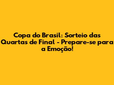 E aí, amantes do futebol! A Copa do Brasil, aquela competição que acende a paixão nos corações de todo brasileiro, está pegando fogo! E a gente tá chegando numa fase decisiva: as quartas de final! Se você, assim como eu, é fanático por futebol e não quer perder nenhum lance, cola aqui que vou te passar tudo sobre o sorteio, os times que estão na briga, onde assistir e até uns palpites pra gente esquentar o debate. Preparados? Vamos nessa!