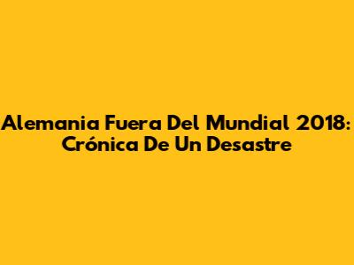 Alemania Fuera Del Mundial 2018: Crónica De Un Desastre