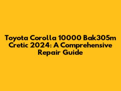 Keeping your Toyota Corolla 10000 Bak305m Cretic 2024 in top condition involves understanding common issues, performing regular maintenance, and making smart repair choices. By following the tips and advice in this guide, you can extend the life of your car and enjoy a reliable driving experience. Remember, proper maintenance and timely repairs are crucial. Stay proactive, and your Corolla will reward you with years of dependable service. Regular maintenance can prevent many problems before they start. Be vigilant about warning signs and address issues promptly. Choose wisely between DIY and professional repair. With proper care, your Corolla will continue to serve you well. Enjoy the ride and safe travels.