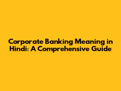 Understanding Corporate Banking in Hindi: कॉर्पोरेट बैंकिंग का मतलब