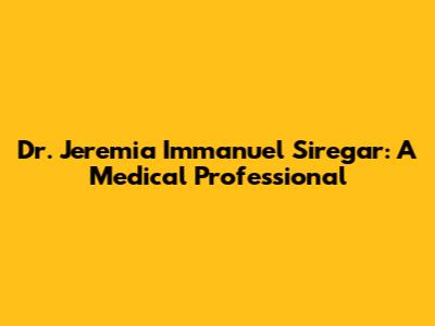 Dr. Jeremia Immanuel Siregar: A Medical Professional