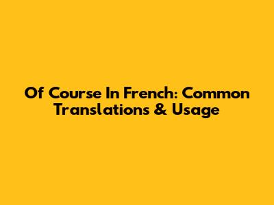 Of Course In French: Common Translations & Usage
