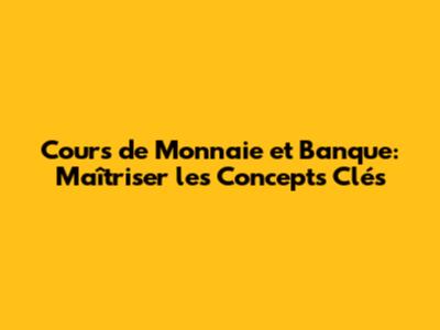 Cours De Monnaie Et Banque: Maîtriser Les Concepts Clés