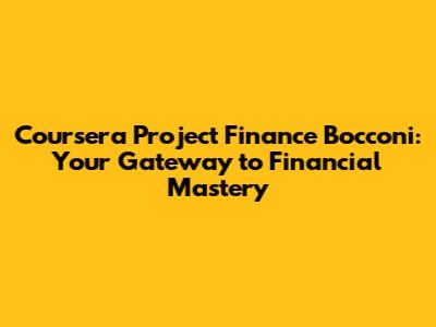 Hey everyone, are you guys looking to level up your financial game? Have you heard about the Coursera Project Finance course offered by Bocconi University? It's a fantastic program, especially if you are interested in finance. If you're a student, a professional, or just someone with a keen interest in finance, this course could be exactly what you need. This article provides a comprehensive overview of the Coursera Project Finance course offered by Bocconi University, exploring its curriculum, benefits, and the skills you'll gain. We'll delve into what makes this course stand out, its practical applications, and how it can help you build a successful career. Project finance is super important because it helps fund major infrastructure projects like power plants, roads, and bridges. Bocconi University is well-respected in the world. So, taking this course could open doors for you. The course's structure is designed to guide you. It's designed to guide you through the complexities of project finance. You'll learn about all the important stages, from the initial planning to the final financing and operational phases. Whether you're interested in the energy sector, infrastructure development, or public-private partnerships, this course will equip you with the essential skills and knowledge. Let's break down why this Coursera course from Bocconi is a top choice for anyone looking to build their project finance skills.